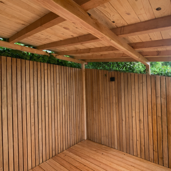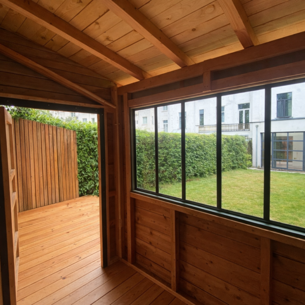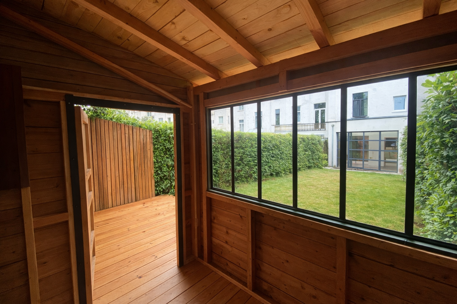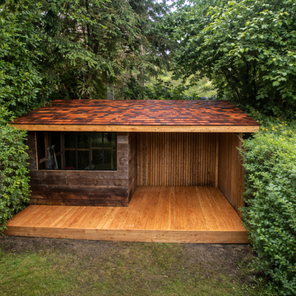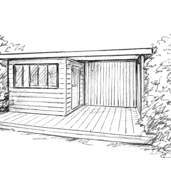 Rénovation d’un cabane de jardin existante, création d’un espace couvert et d’une terrasse.